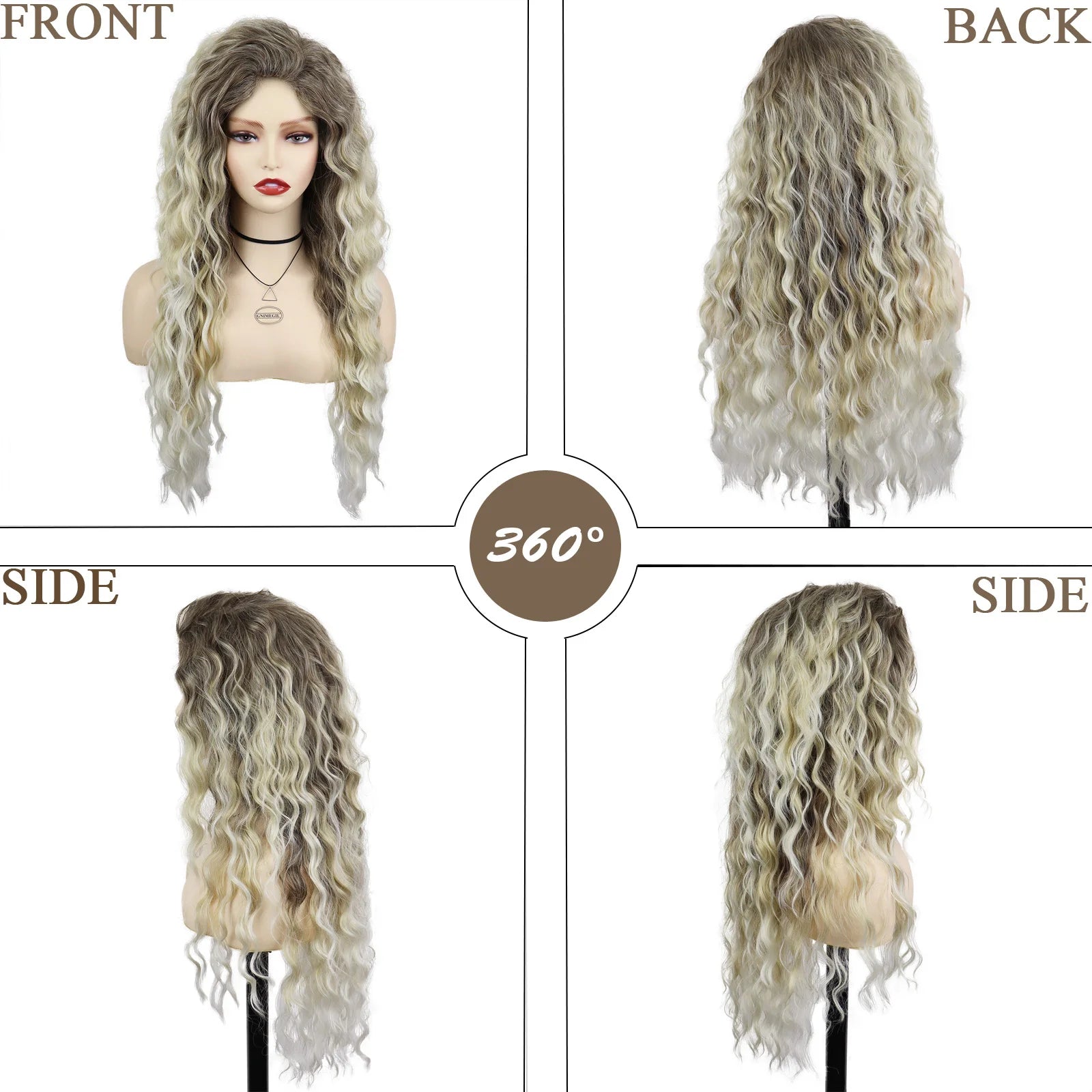 Ash Blonde Long Curly Synthetic Wig - Natural Wavy, Dark Root, 80s Brown Ombre for Women and Girls