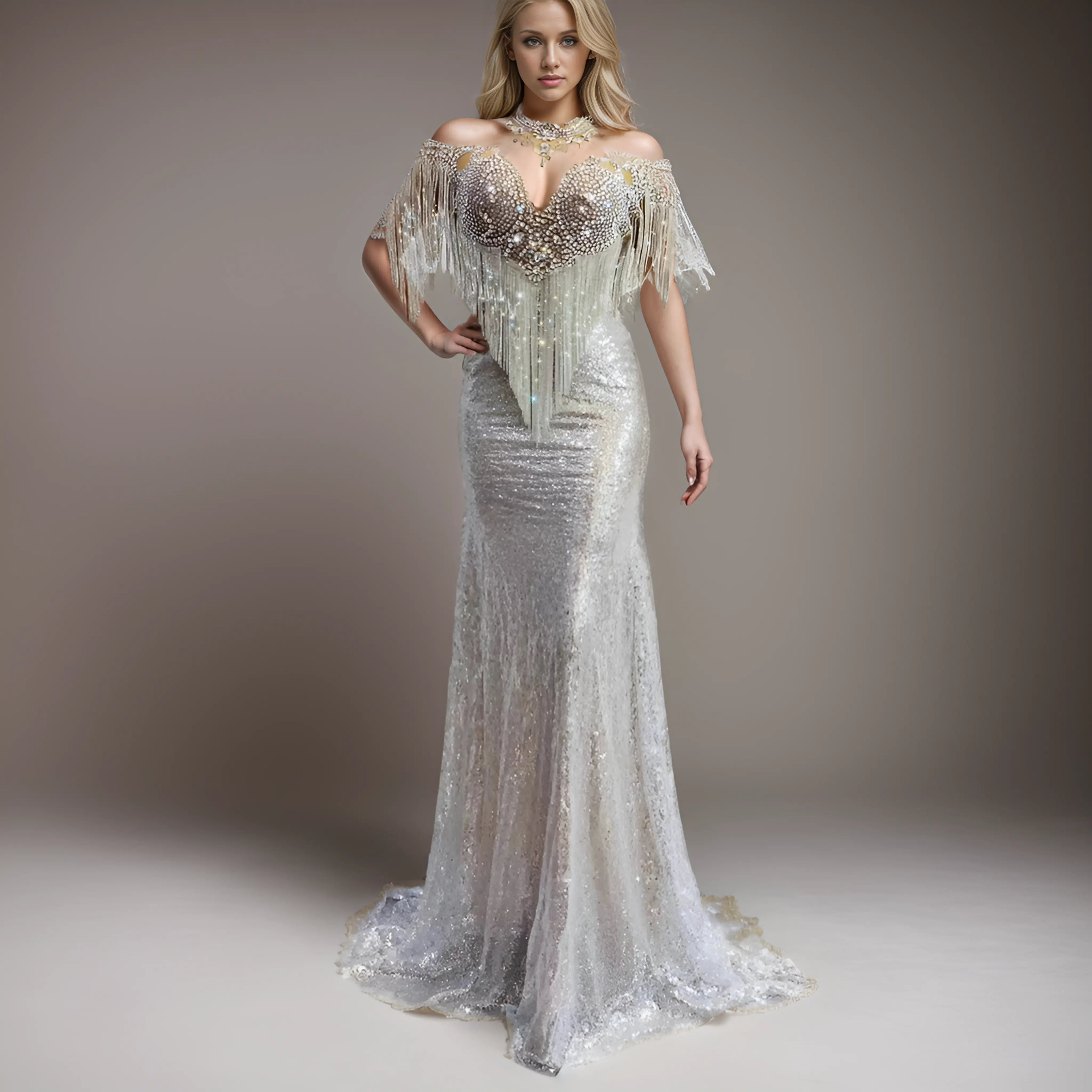 Dazzling Rhinestone Fringe Sequin Dress, the epitome of style and glamour for your special occasions. This unique dress is designed to make you shine and stand out, adorned with captivating rhinestone accents and fringe sequins that catch the light and create a mesmerizing effect.