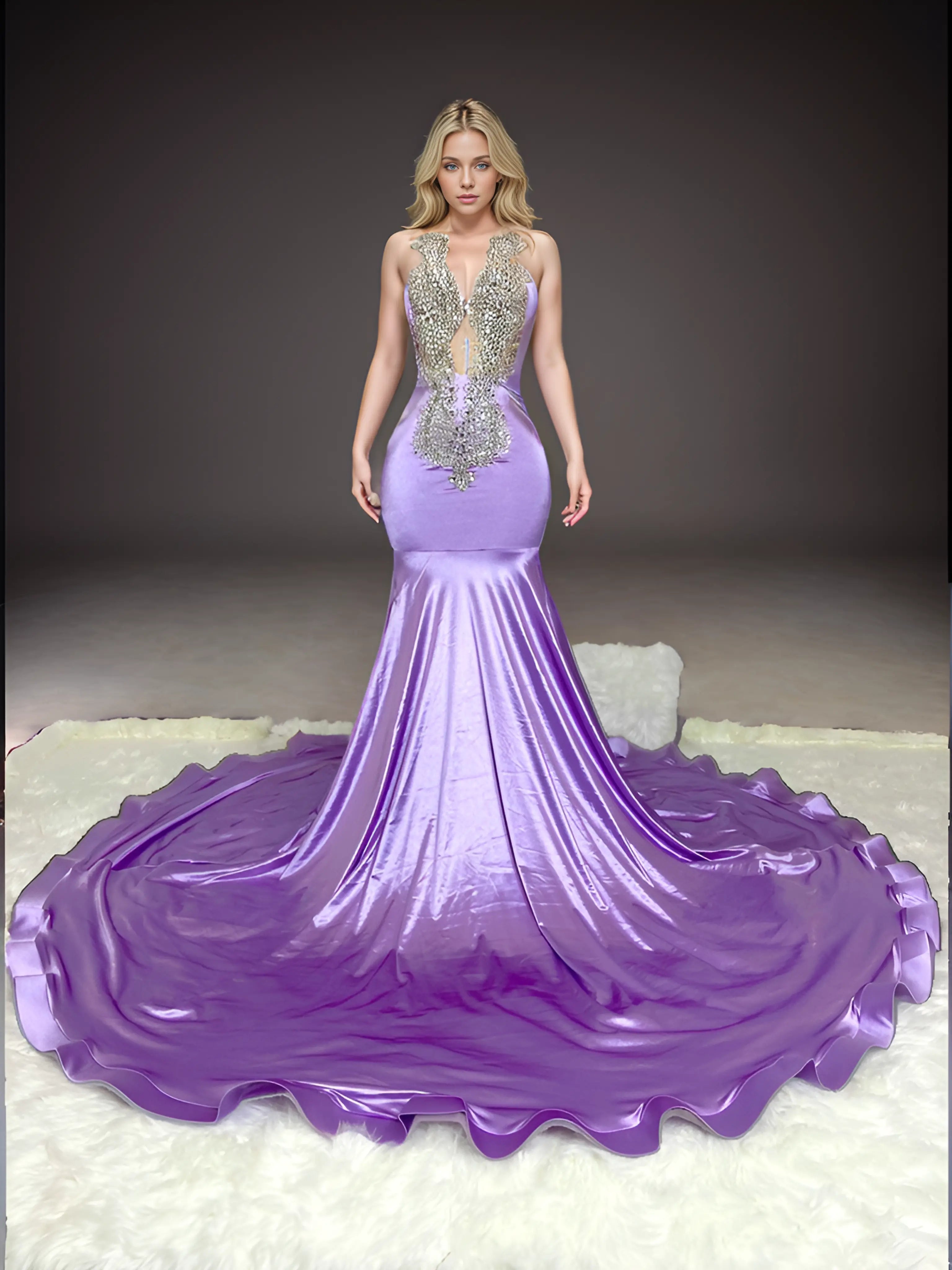 Step into a world of enchantment with our Silver Tassels Crystal Beaded Purple Prom Dresses. These luxurious gowns are designed for black girls who seek a perfect blend of elegance and allure. The mesmerizing mermaid silhouette adds a touch of sophistication, while the intricate crystal beading and silver tassels create a dazzling effect. Perfect for special occasions, these gowns embody the essence of luxury and style. Elevate your presence with a dress that captures attention and exudes timeless beauty. Make a statement at your prom or any special event, embracing the magic of the moment in these exquisite and unforgettable creations