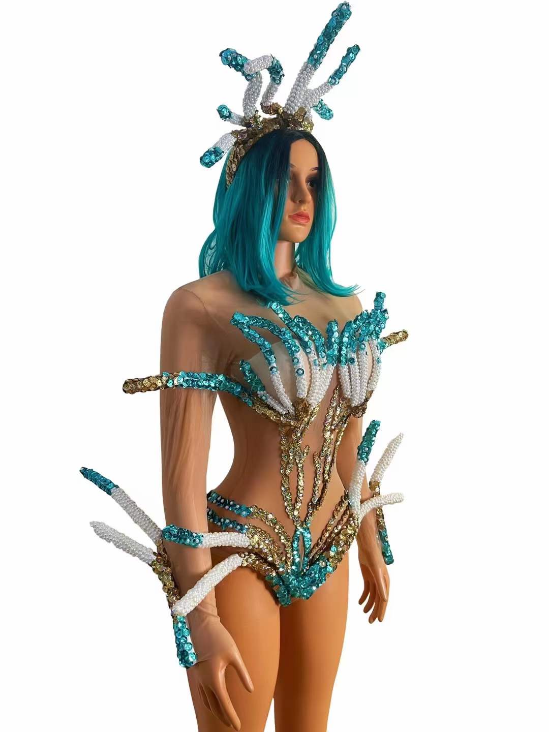 Glamourous Halloween Night - Dazzling Diamond Sparkle and Pearl Elegance for DJ Events and Party Stage Costumes