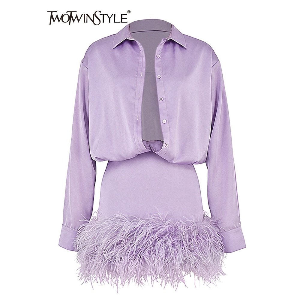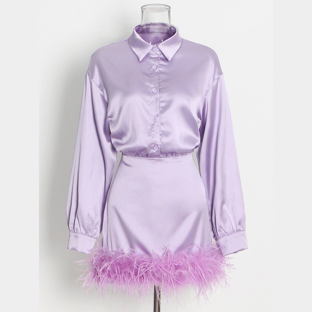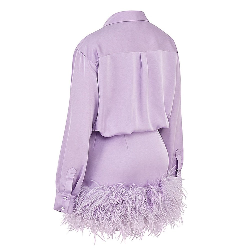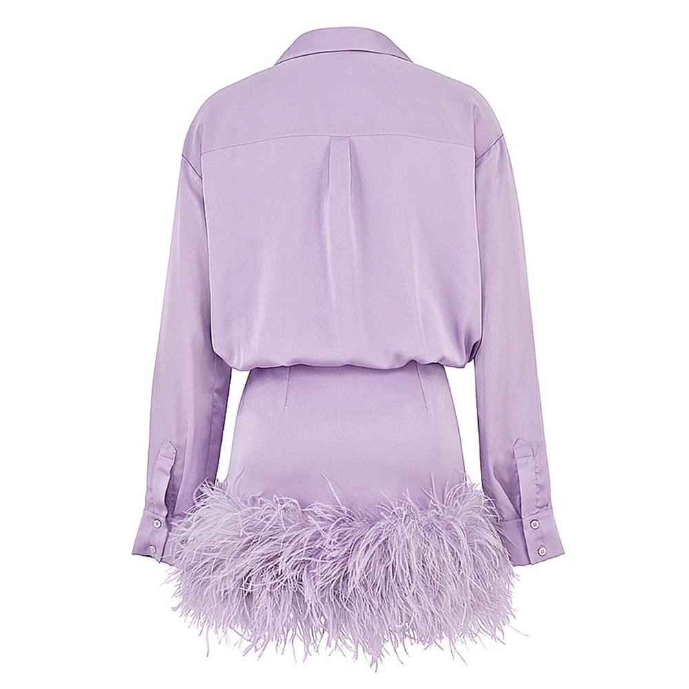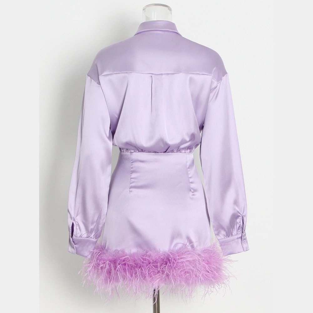 Long Sleeve Mini Dress: High Waist Feathers & Solid Color - Spring Style