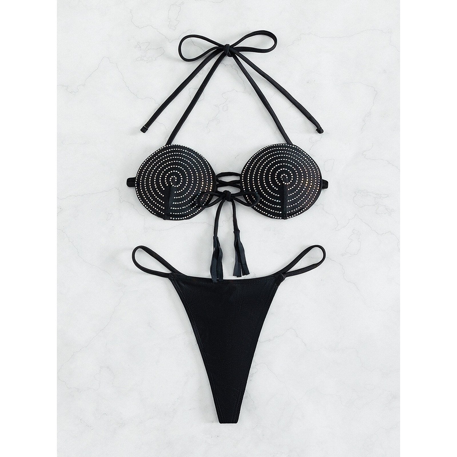 Luxury Rhinestone Halter Bikini - Black Lace-Up Micro Swimsuit for Women