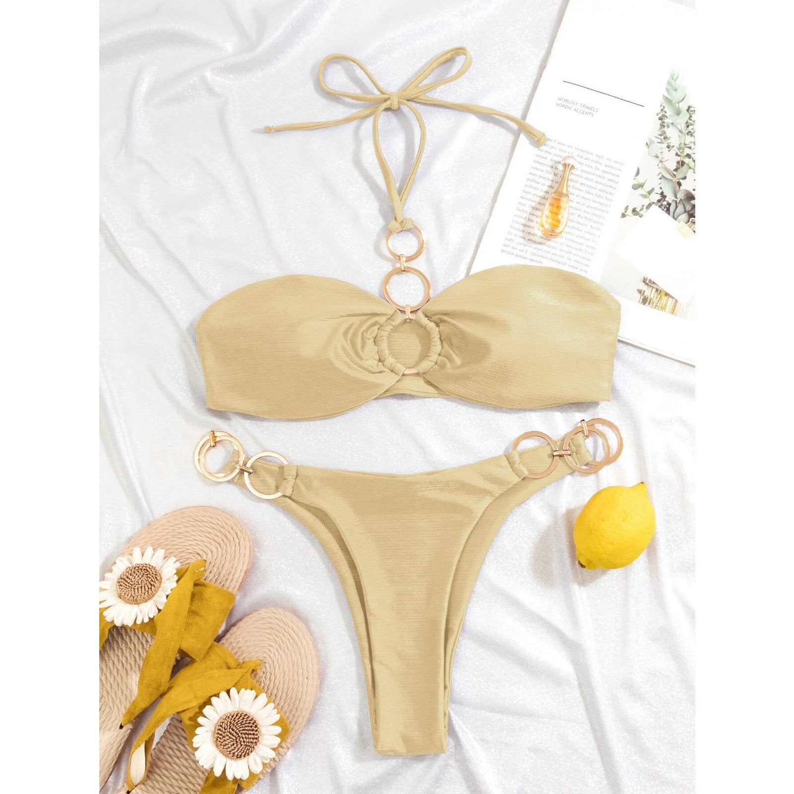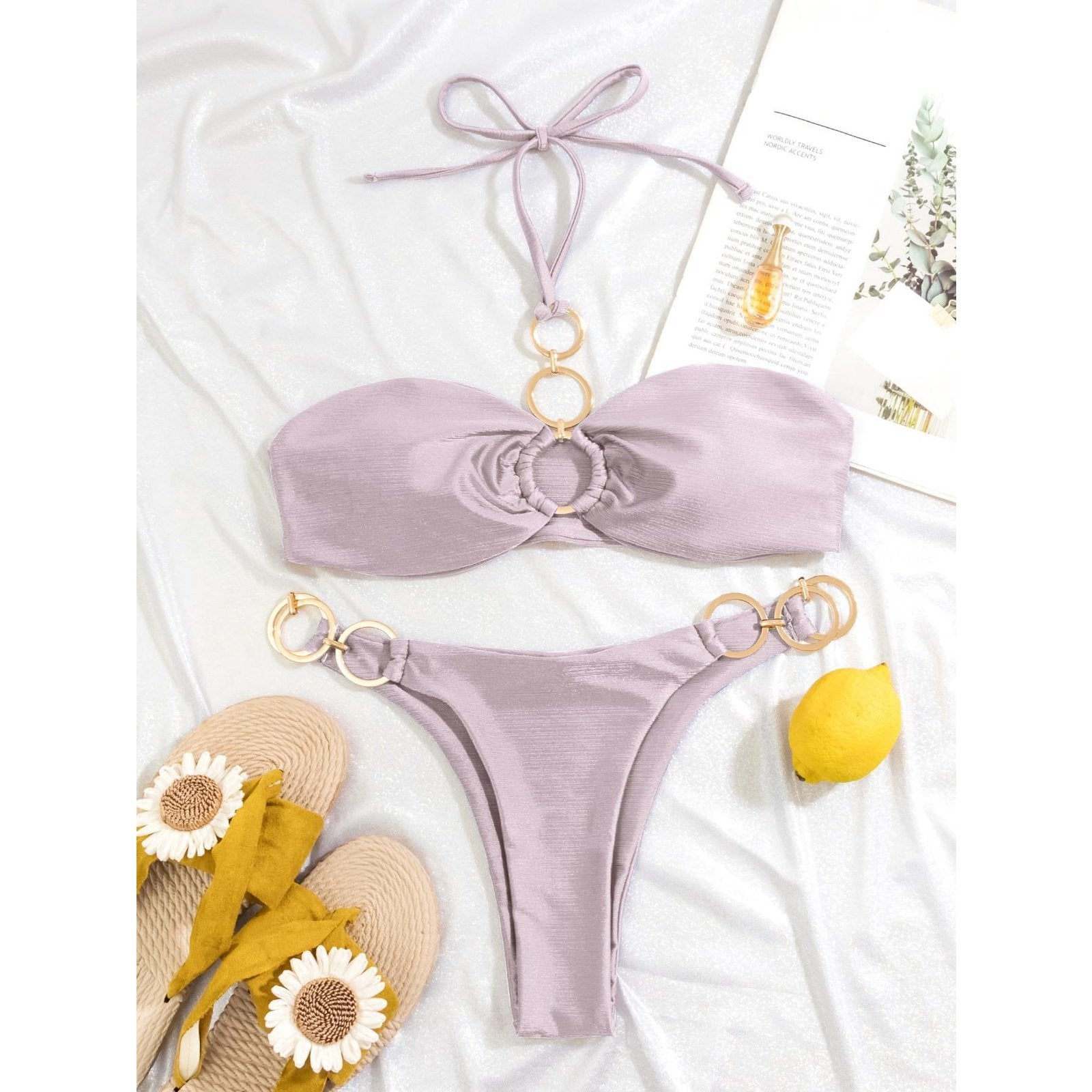 Melphieer Chain Linked Blue Bikini - Brushed Swimsuit for Women's Beach & Holiday Swimwear