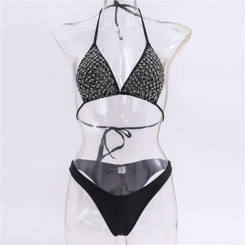 Diamond Swimsuit with Shiny Strappy Bandage Accents