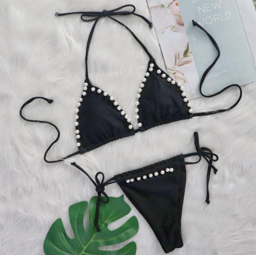Pearly Elegance - Halter Strappy Bikini, Embracing Seduction in Swimwear Glamour