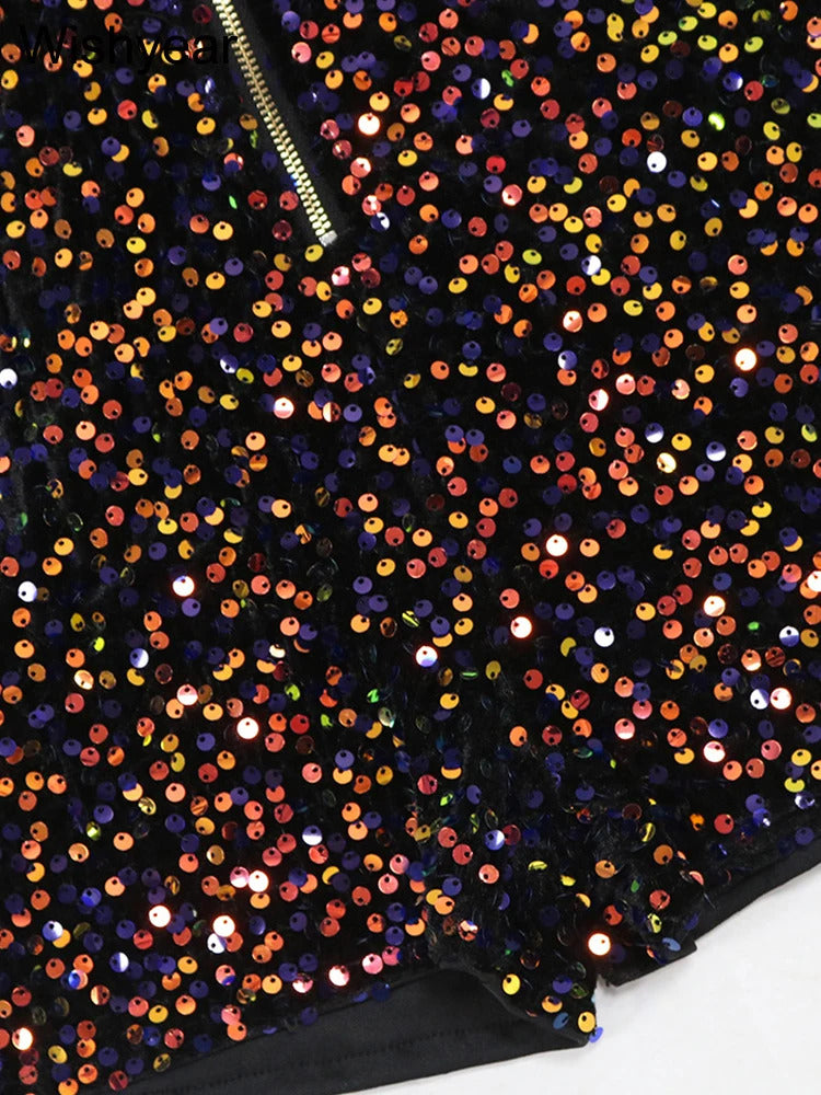 Perfect for parties, clubbing, or special occasions, this jumpsuit exudes confidence and style. Its solid pattern and sequin decoration add a touch of glamour to your look. Whether you're in your middle age or embracing your youthful spirit, this jumpsuit complements various age groups with its timeless appeal.