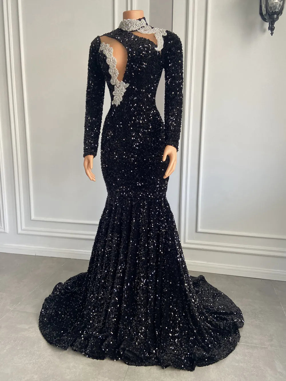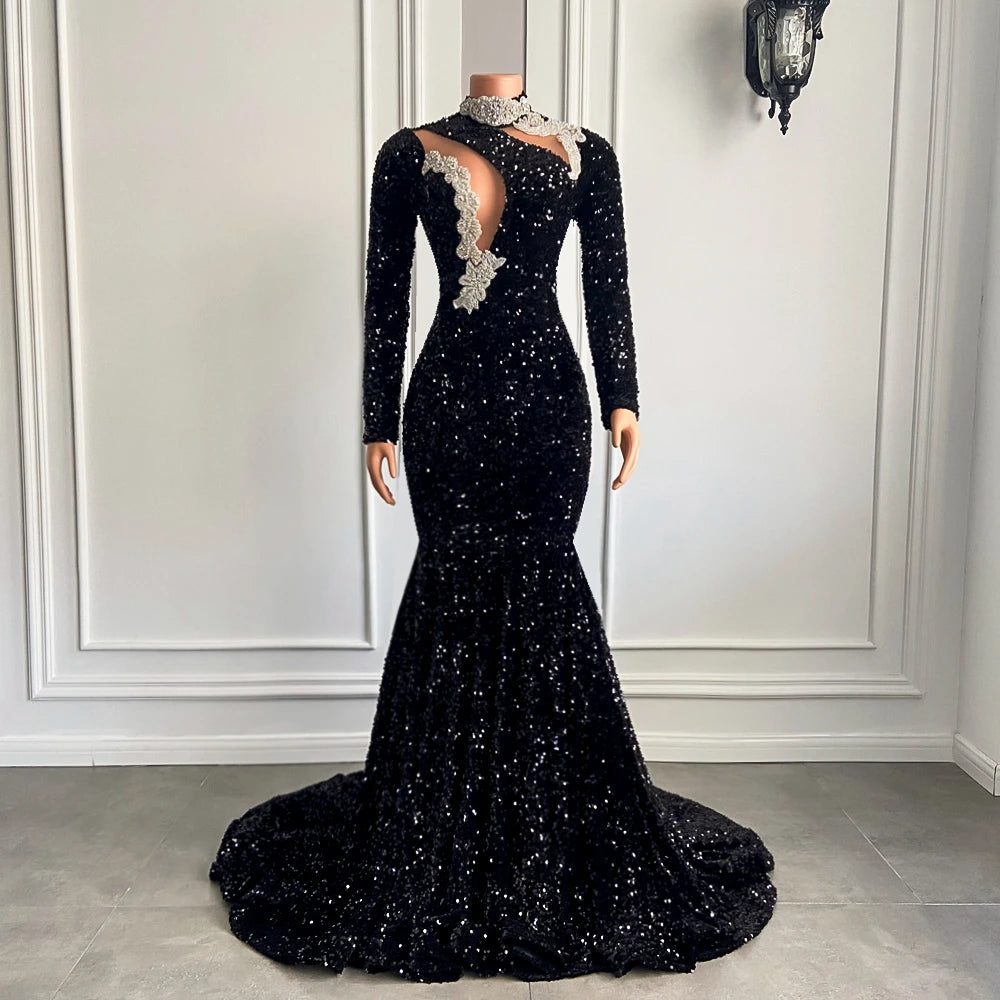The sparkly sequins on this gown ensure you radiate confidence and style, making you the center of attention. It's not just a dress; it's a bold fashion statement. Crafted with meticulous attention to detail, this gown is the perfect choice for black girls seeking a distinctive and unforgettable look.