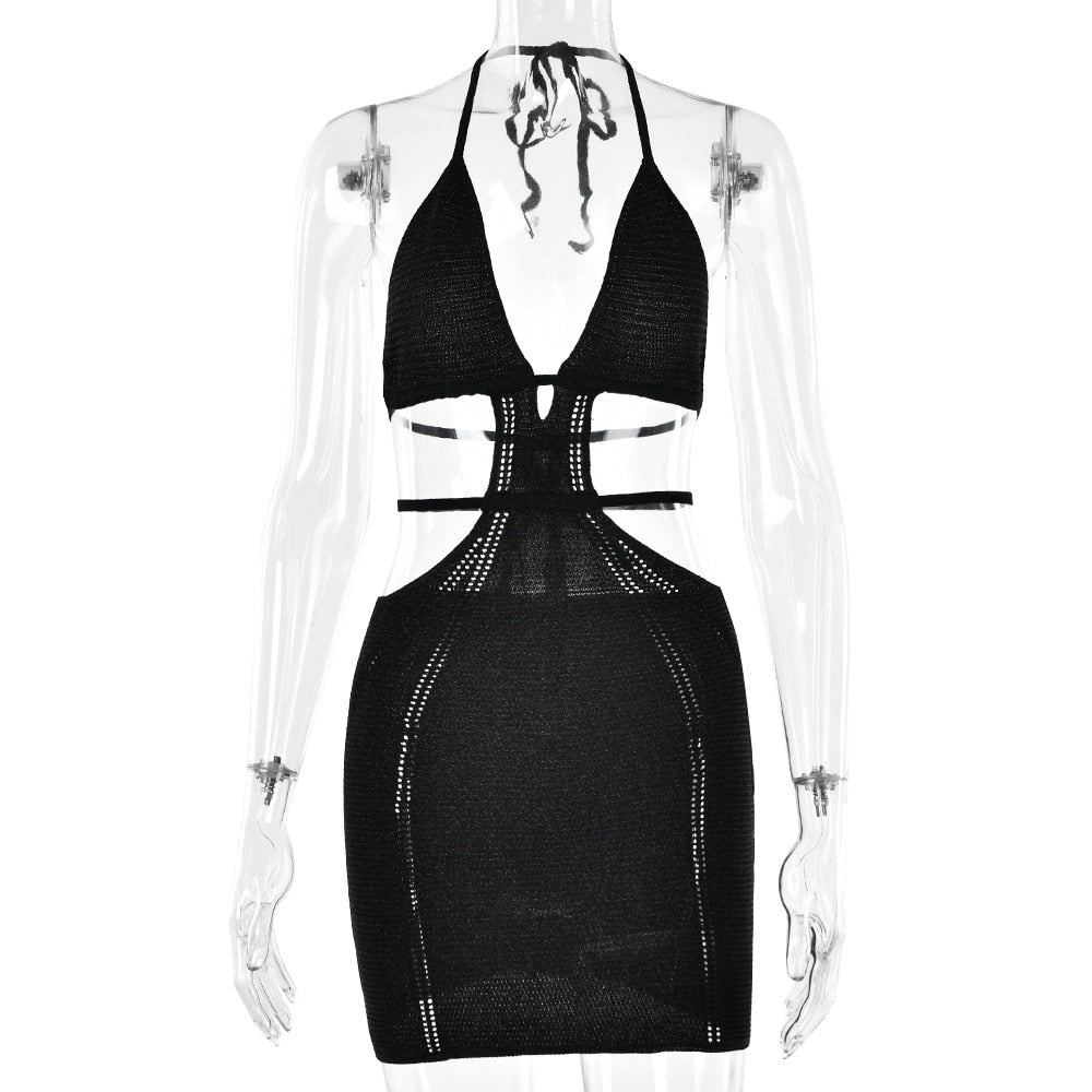 Solid Halter Hollow Out Lace-Up Dress, designed to make you stand out at any prom, party, or vacation event! This sleeveless, backless dress features a flattering halter neckline and an alluring hollow-out design, beautifully accentuating your curves. The lace-up detail adds a touch of sophistication while ensuring a comfortable and secure fit.