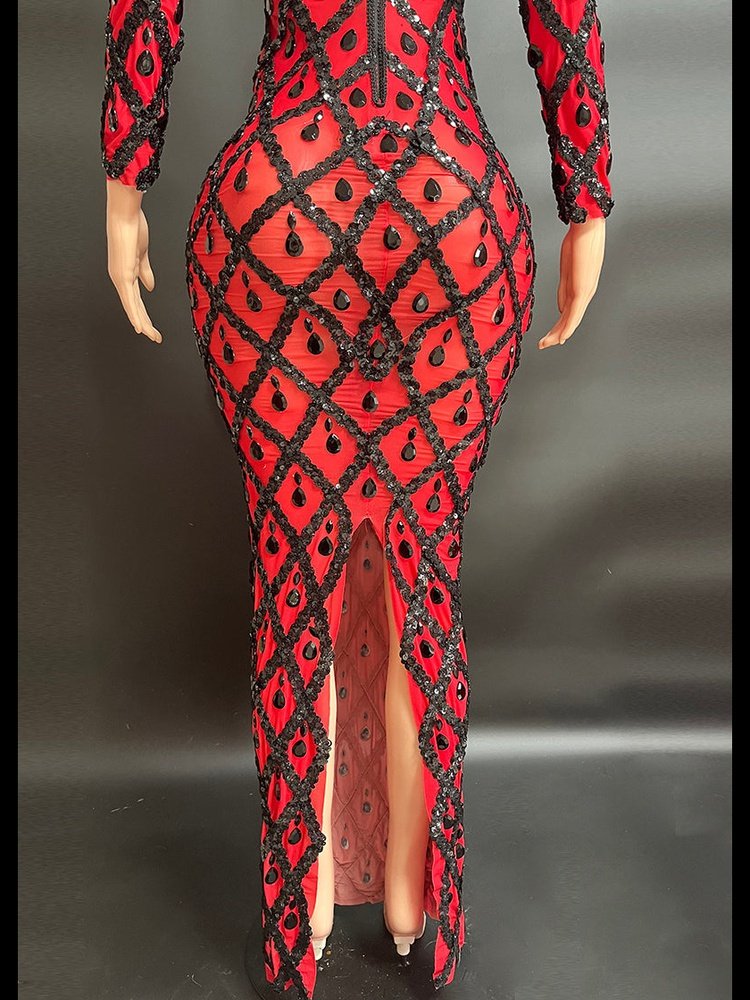 Sophisticated High-Neck Red Evening Gown - Perfect for Parties, Clubs, and Formal Affairs