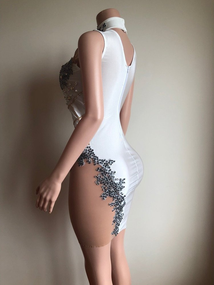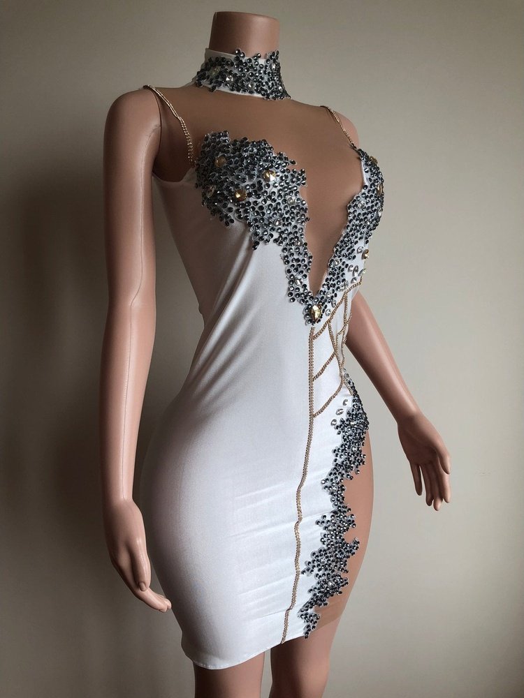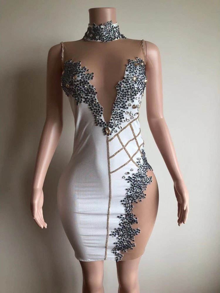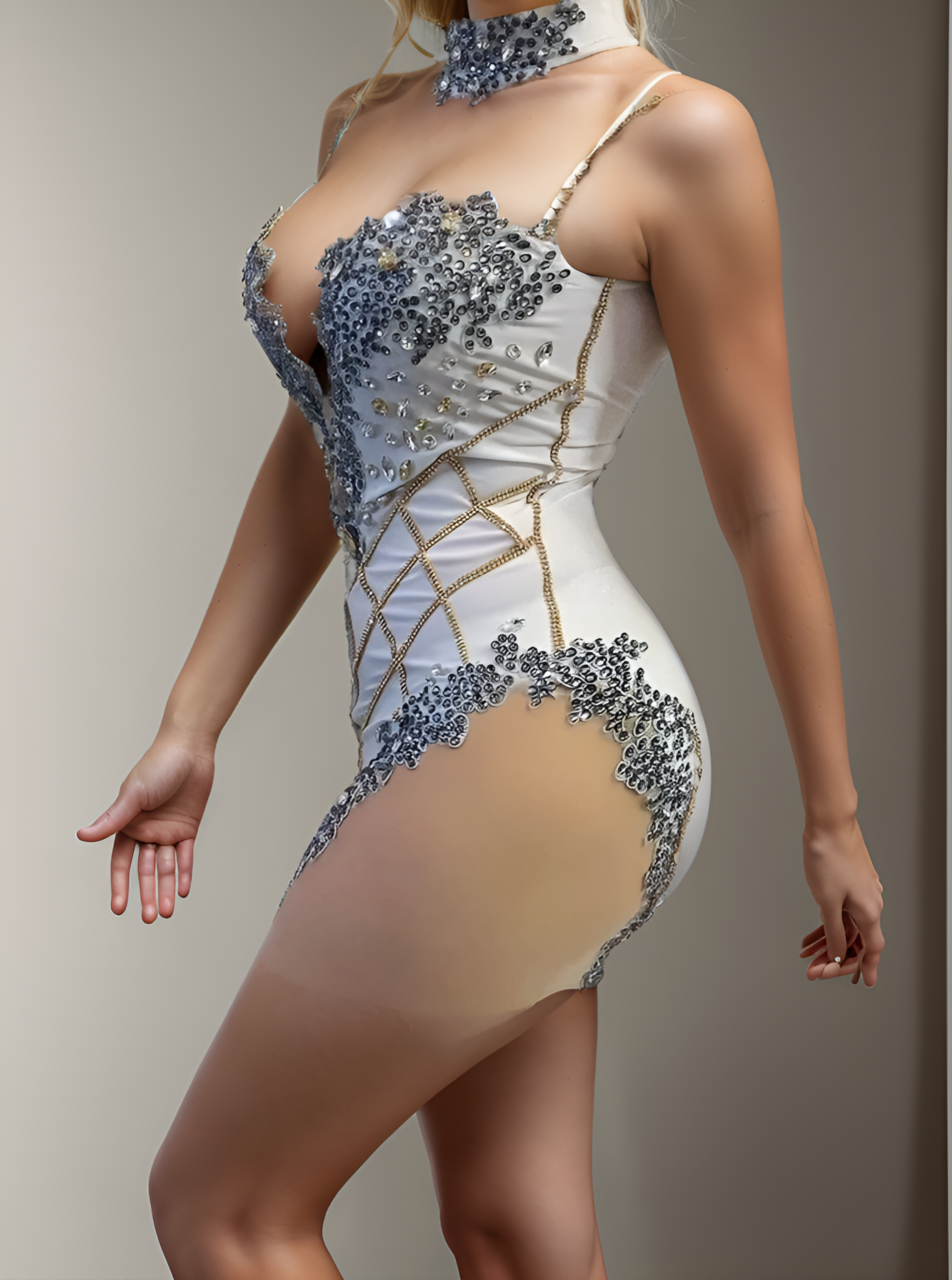 Sparkling Rhinestone Transparent Short Dress - Ideal for Bar Parties, Birthdays, Celebrations, Women Dancers, Singers, and Proms