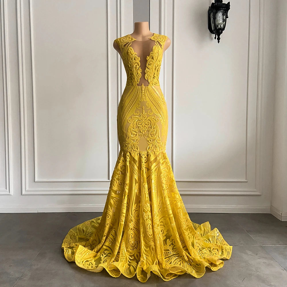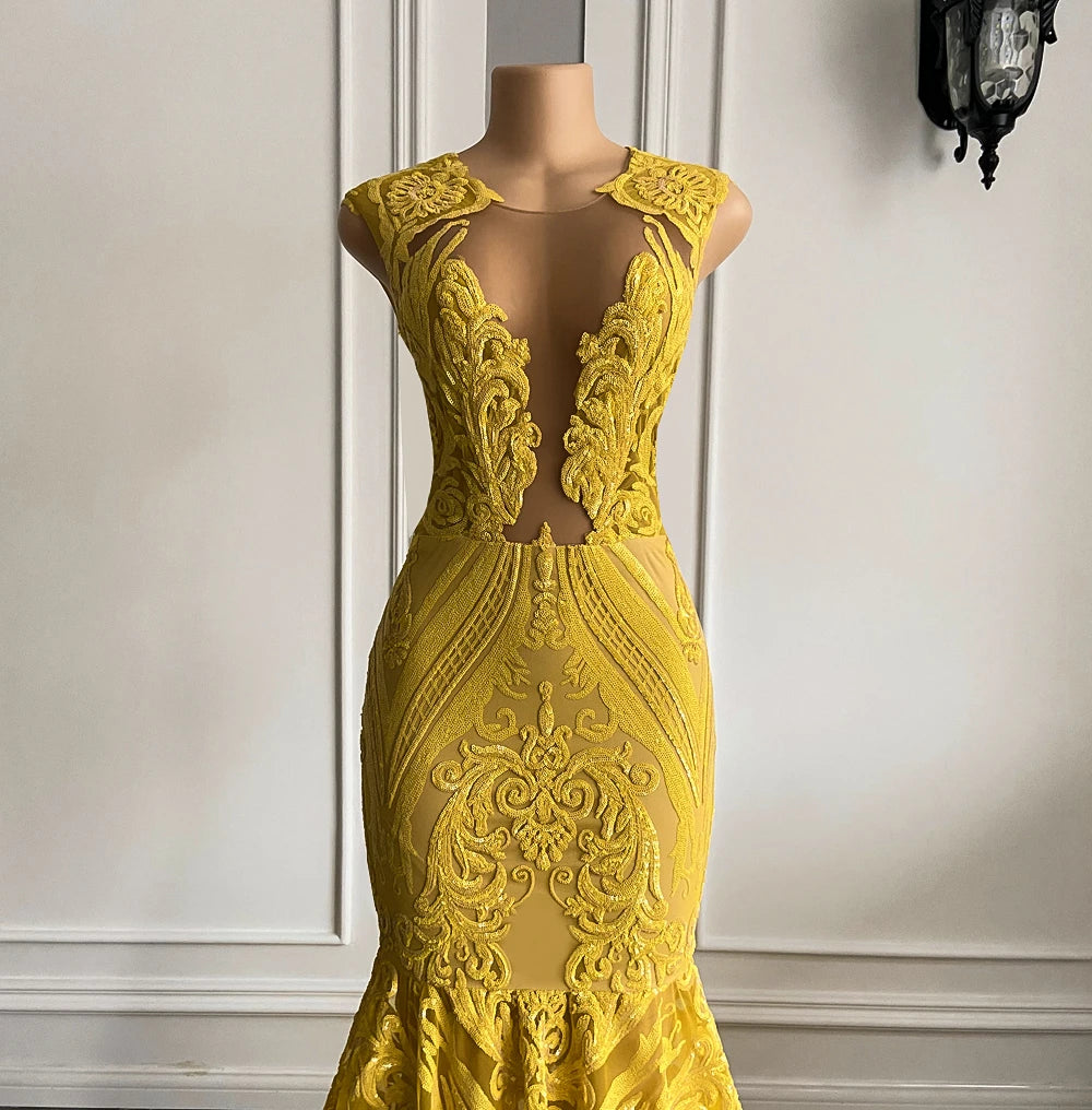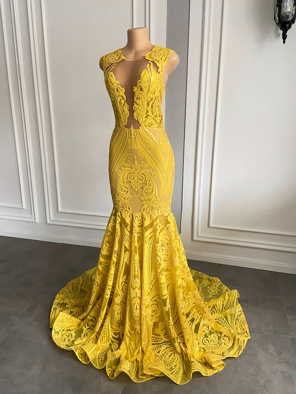 The vibrant yellow color and African-inspired design make this gown truly distinctive and perfect for black girls who want to embrace their heritage with style. Crafted with meticulous attention to detail, the sparkling sequins create a captivating and glamorous effect that's bound to turn heads.