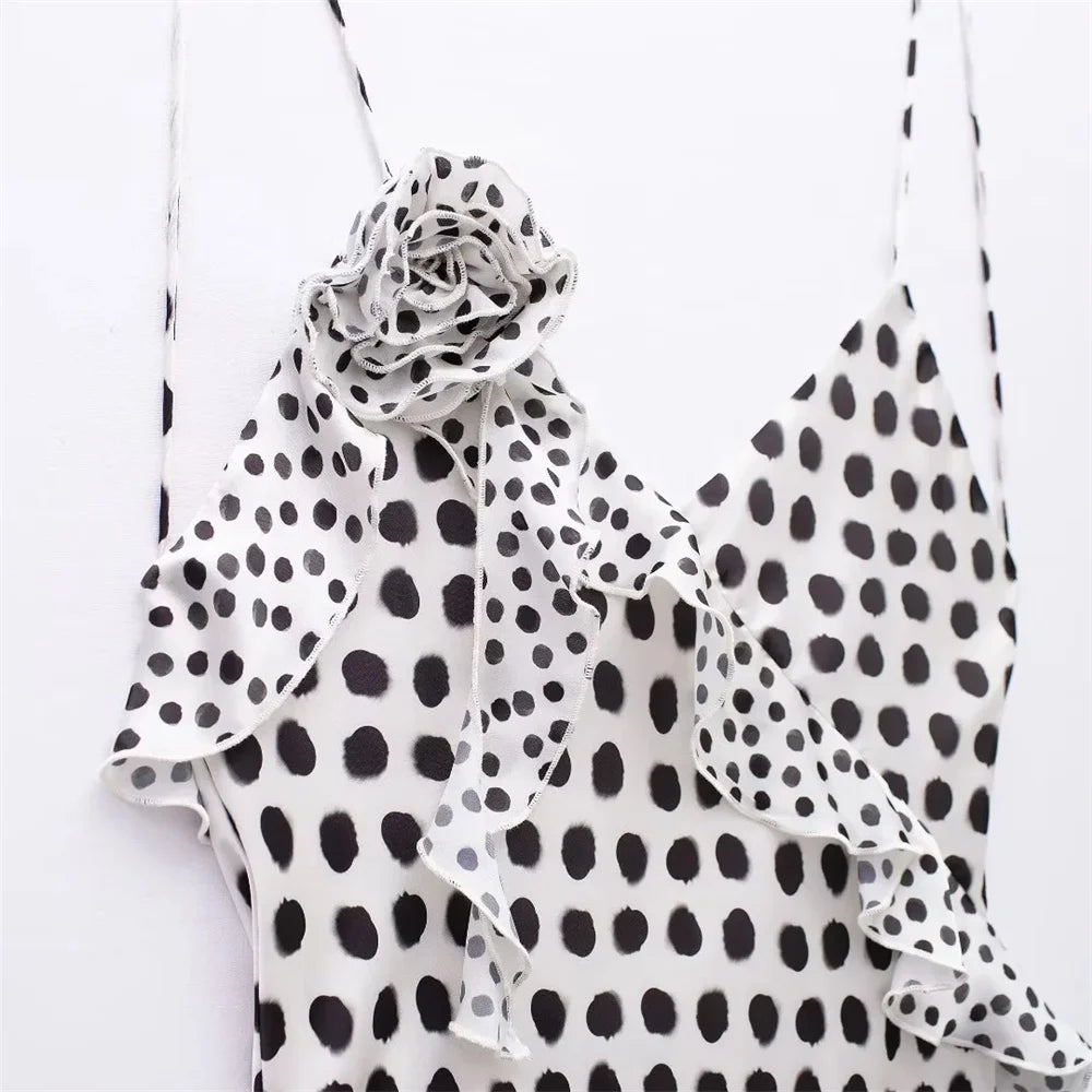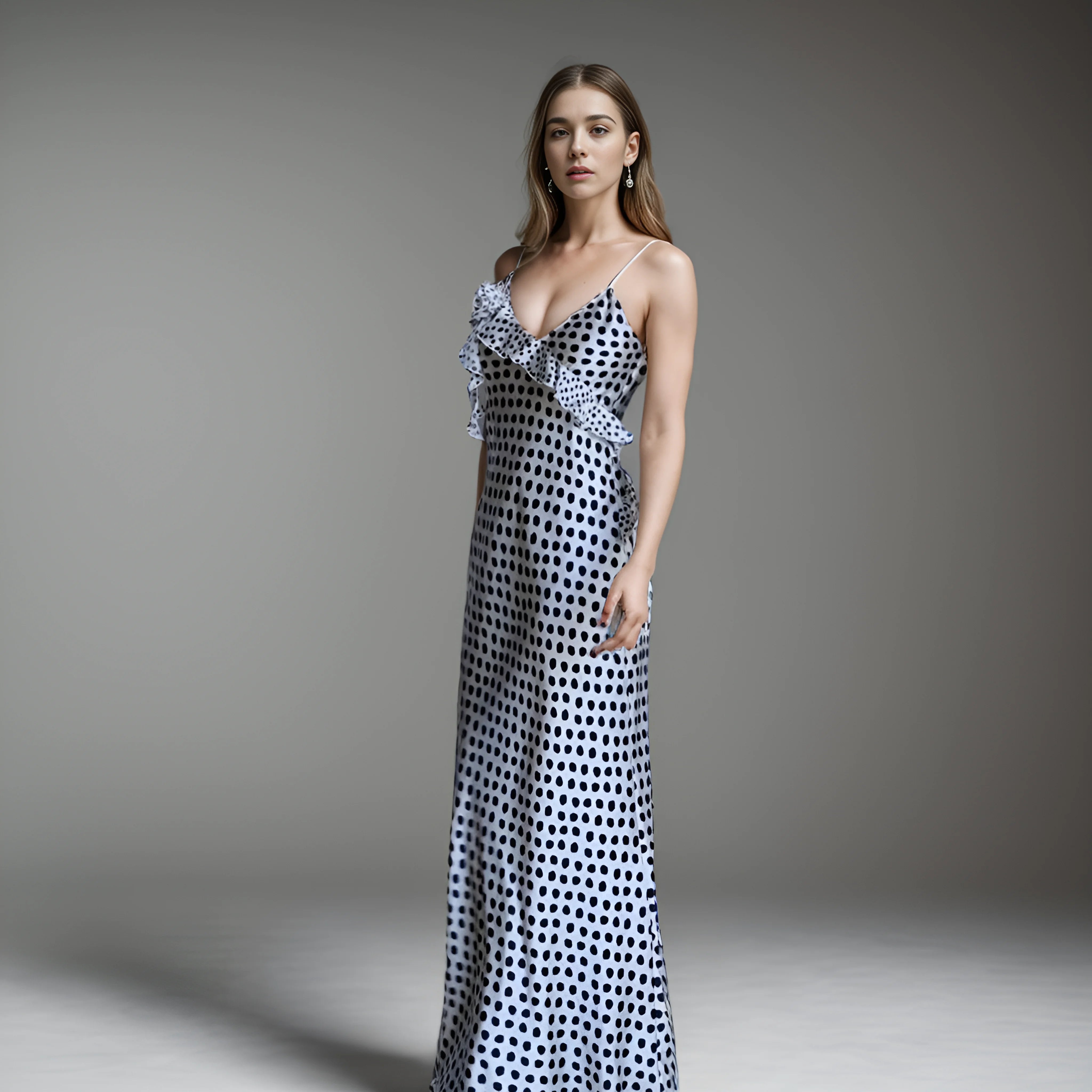 Luxury with our stunning Floor-Length Polka Dot Silk Dress. Crafted with exquisite attention to detail, this dress exudes elegance and sophistication, perfect for juniors looking to make a statement.