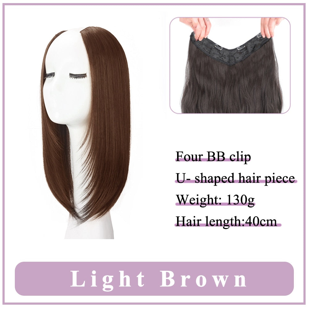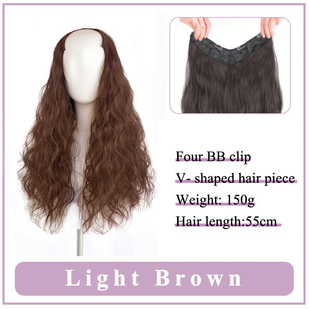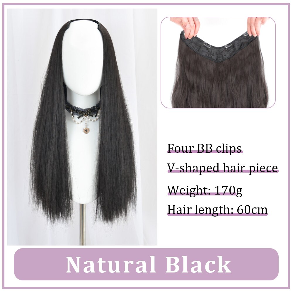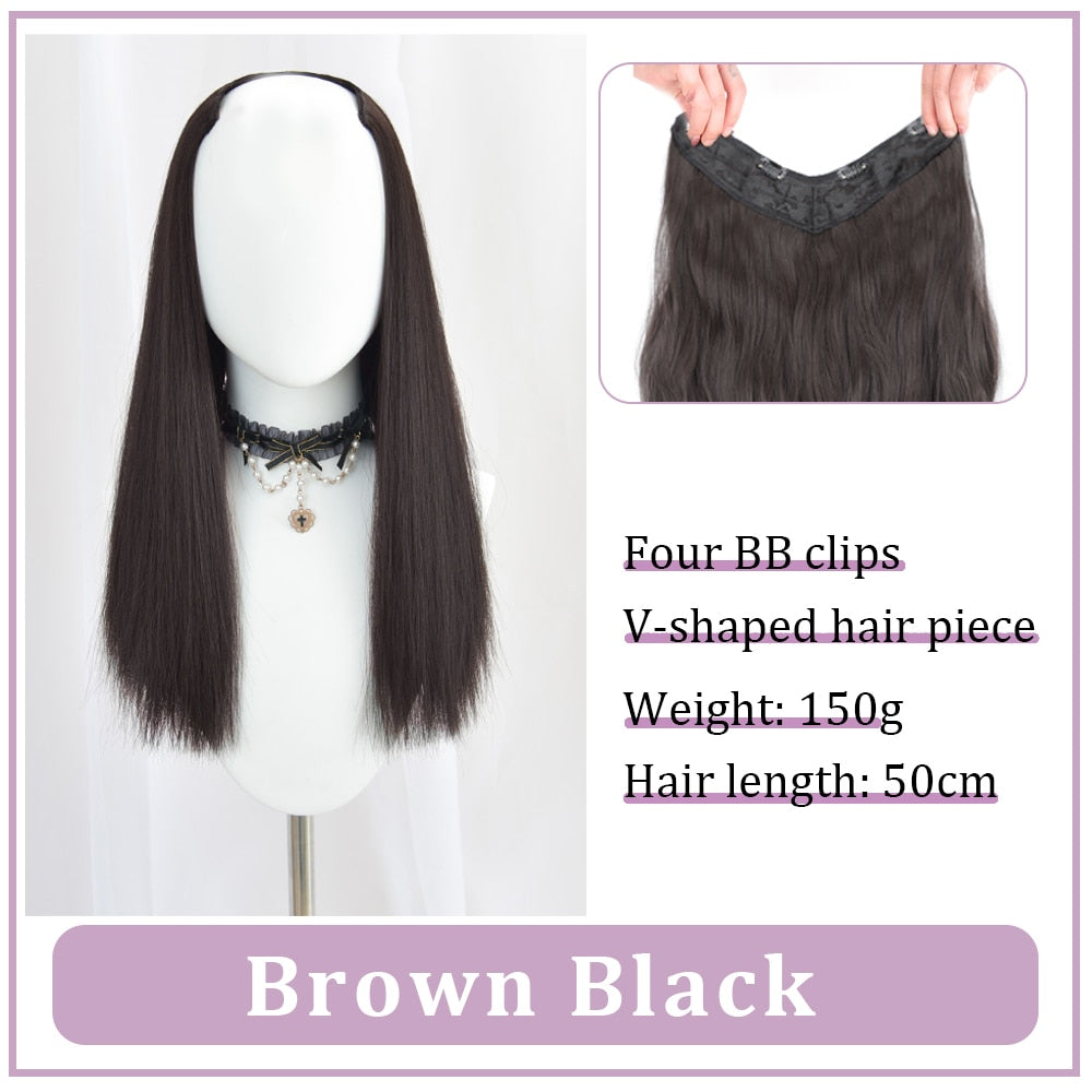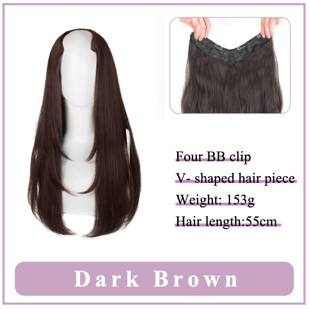 V-Shaped Synthetic Wig - Women's Long Hair Extension for Volume & Style
