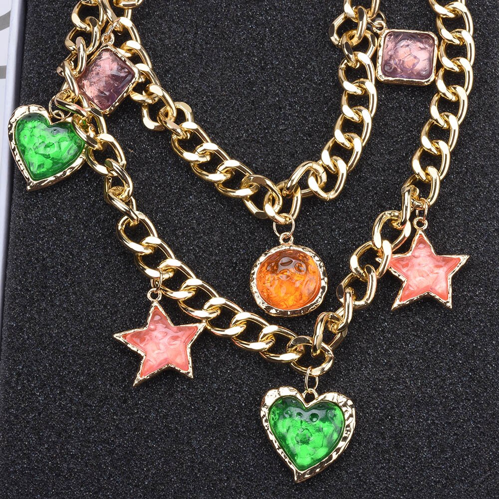 Vintage ZA Heart Star Choker Necklace - Golden Metal Chains with Charms for Women